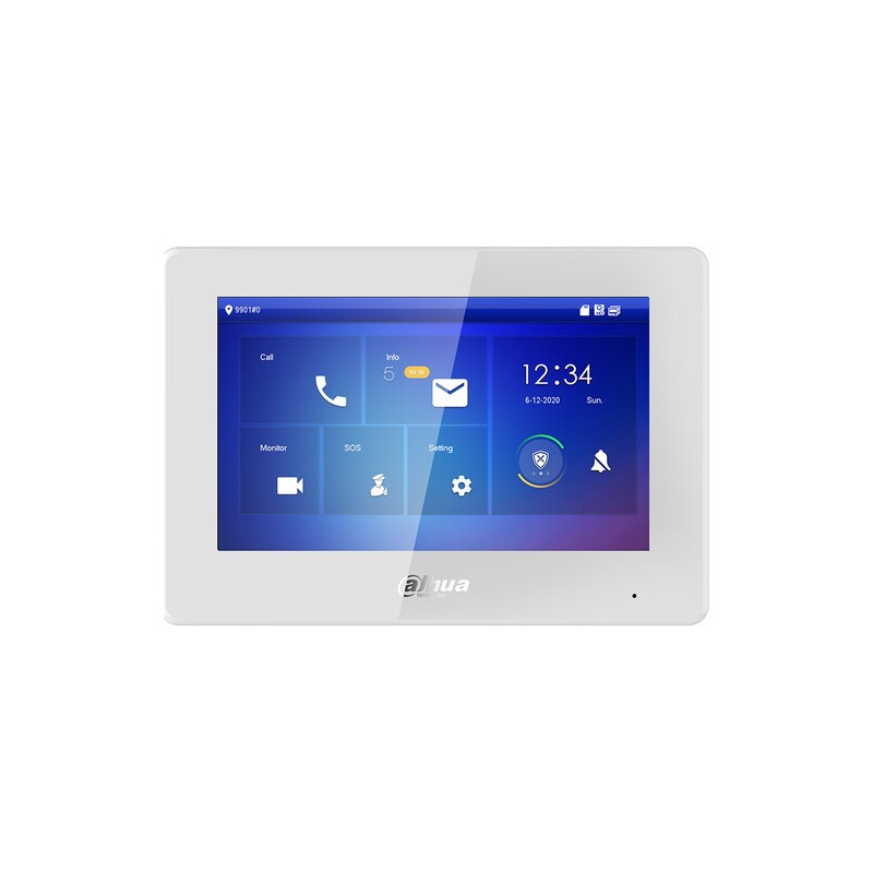 El VTH5422HW-W de Dahua es un monitor interior IP con WiFi y pantalla táctil, que te permite ver, hablar y abrir la puerta de forma cómoda y segura.