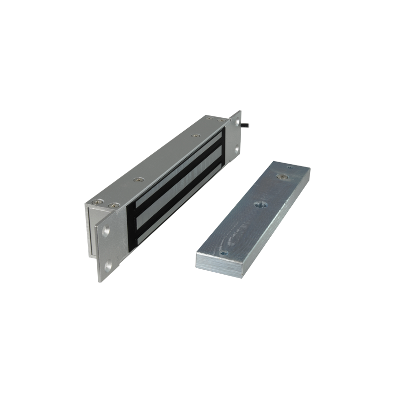 Retenedor electromagnético de 280 Kgs para bloqueo de puertas. Modo de apertura Fail Safe (NC). Montaje empotrado.