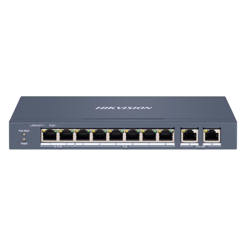 | Interface | 8 puertos PoE+ RJ45 10/100 Mbps + 2 RJ45 10/100/1000 Mbps uplink |