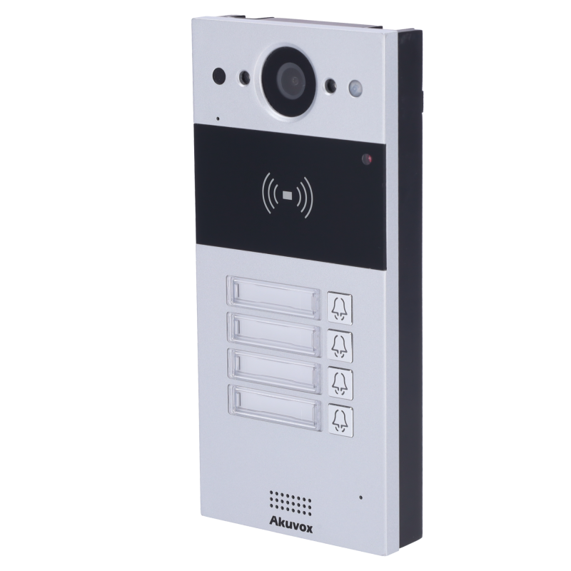 Estos equipos también tienen la capacidad de abrir la puerta mediante sus salidas de relé. Este modelo dispone de 2 salidas de relé para poder gestionar hasta 2 puertas de forma simultánea, con salida de 12 VDC (permite alimentar directamente la cerradura electrónica sin necesidad de una fuente de tensión adicional al alimentarse el equipo por PoE estándar). Además, cuenta con control de acceso integrado, permitiendo la identificación a través de tarjetas o llaveros con tecnología RFID EM de 125 kHz y MF de 13.56 MHz y NFC.